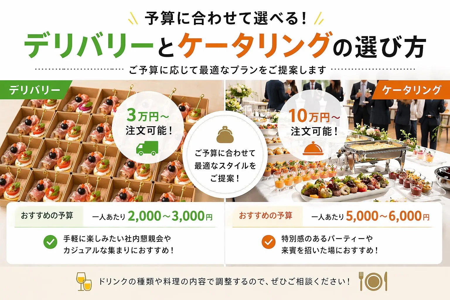 一方で、10万円以上のご予算がある場合はケータリングもご利用いただけます。